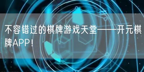 不容错过的棋牌游戏天堂——开元棋牌APP!