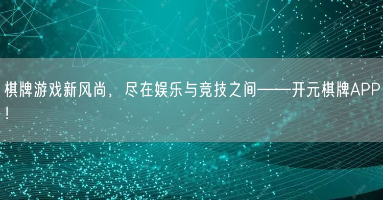 在数字化时代,棋牌游戏以其独特的魅力,成为大众娱乐生活的重要组成部分。而如今,这一传统游戏更是迎来了全新的风貌——通过移动应用,人们可以随时随地享受棋牌游戏的乐趣。今天,我们要为大家介绍的,便是这款融合了娱乐与竞技精髓的“开元棋牌APP”。