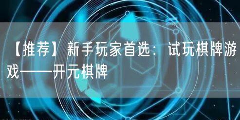 【推荐】新手玩家首选:试玩棋牌游戏——开元棋牌