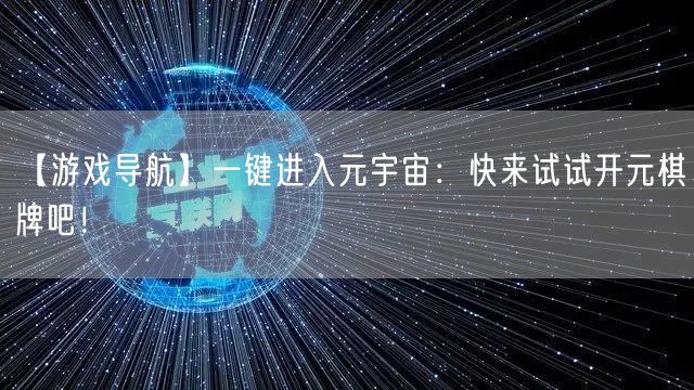 【游戏导航】一键进入元宇宙:快来试试开元棋牌吧!