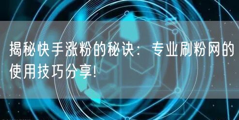 揭秘快手涨粉的秘诀:专业刷粉网的使用技巧分享!